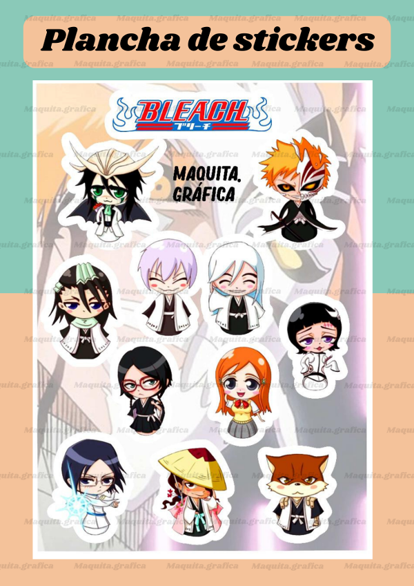 Plancha de tamaño A5 con 9/10 stickers de entre 5 a 6 cm.
