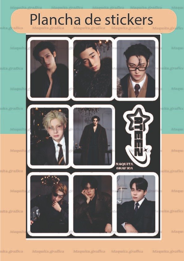 Plancha de tamaño A5 con stickers de entre 5 a 6 cm.