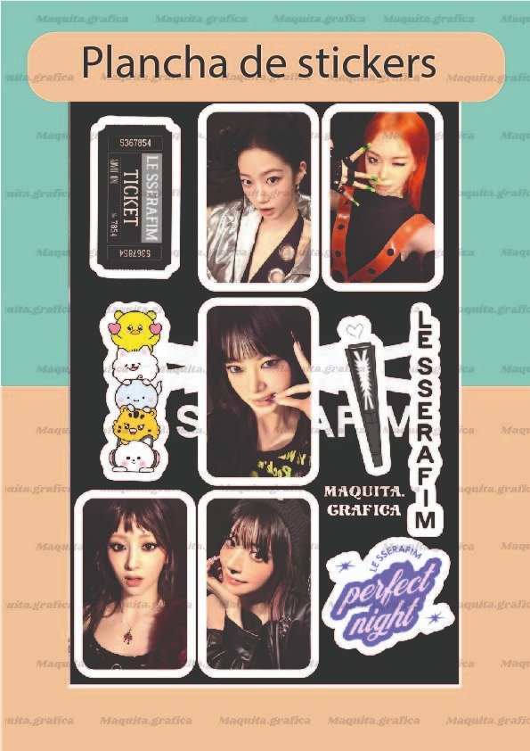 Plancha de tamaño A5 con stickers de entre 5 a 6 cm.