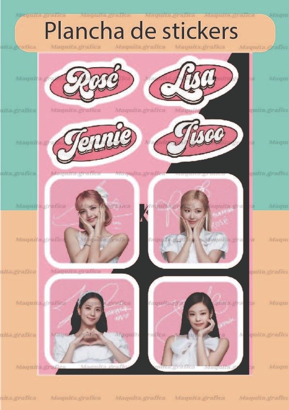 Plancha de tamaño A5 con stickers de entre 5 a 6 cm.