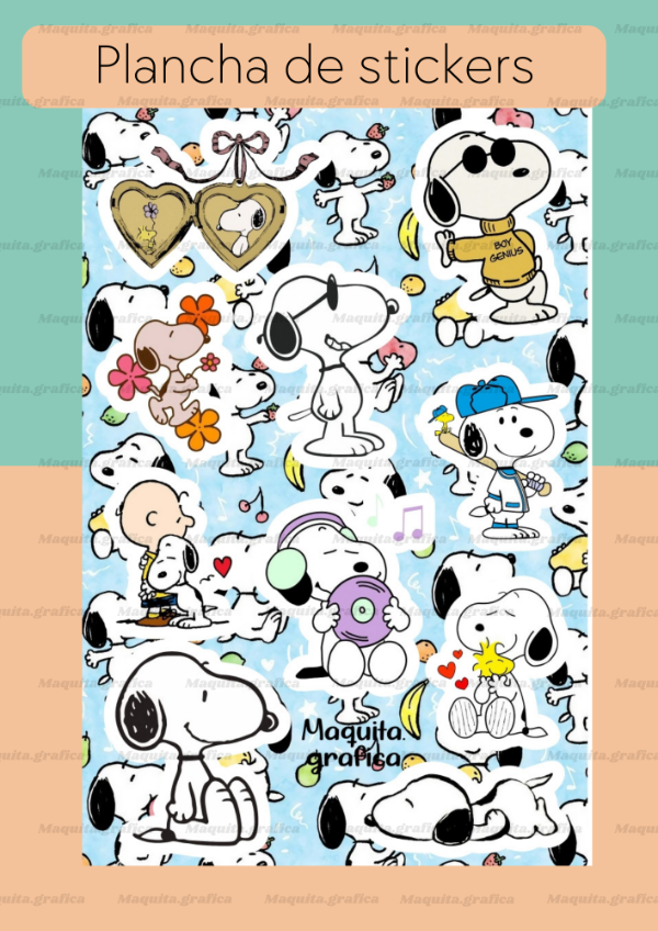 Plancha de tamaño A5 con stickers de entre 5 a 6 cm.