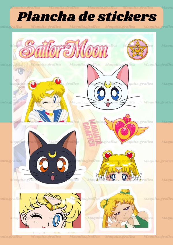 Plancha de tamaño A5 con 9/10 stickers de entre 5 a 6 cm.