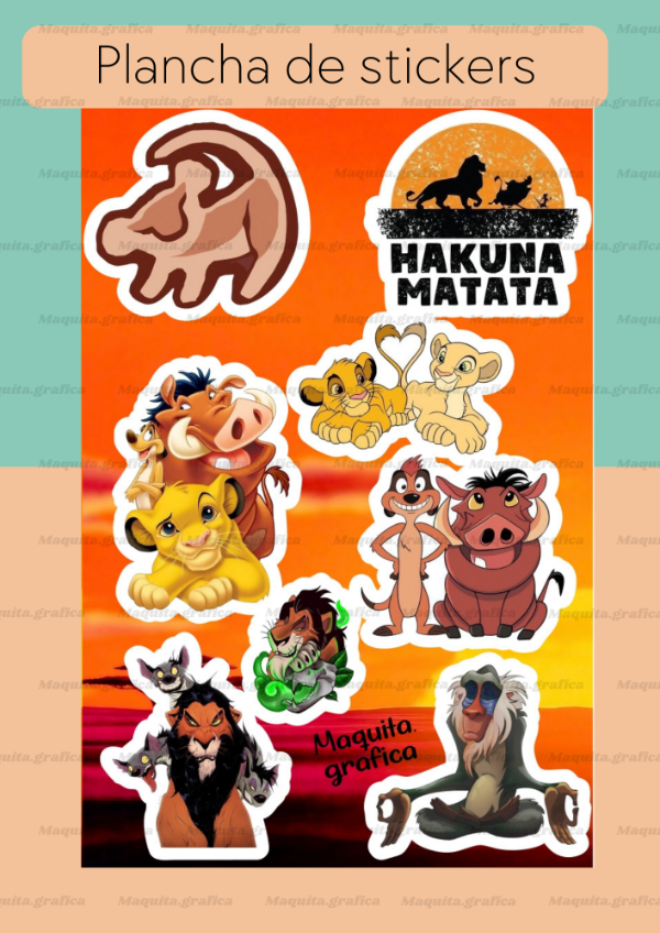 Plancha de tamaño A5 con stickers de entre 5 a 6 cm.