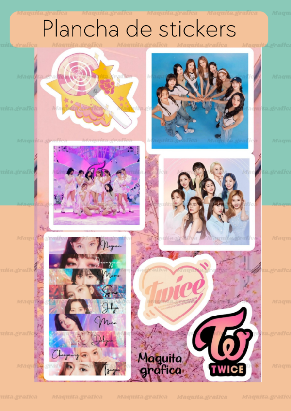 Plancha de tamaño A5 con stickers de entre 5 a 6 cm.
